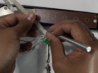 • Desolder the wires by pressing the iron against the solder points and pull the wires away.