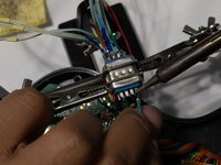 • De-solder the wires from the connector by pressing the iron against the solder points and then pulling the wire away.