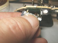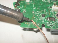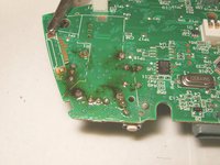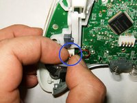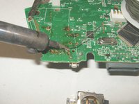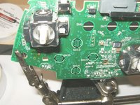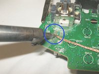 To remove the left analog stick, the left trigger button will have to be removed first. Desolder the three solder points. Use desoldering wick and some flux to remove the solder.