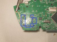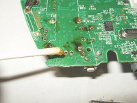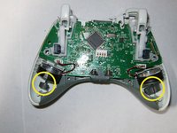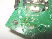 With the left trigger removed, simply turn the logic board over and find the 14 solder connections