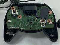 Using a Phillips #1 screwdriver, remove the four yellow 8 mm screws holding the motherboard to the bottom half of the controller.