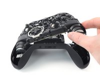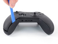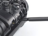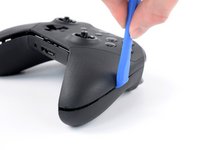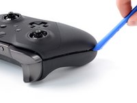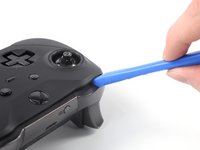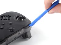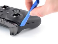 Insert an opening tool into the seam between the two housings on the controller’s left edge.