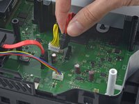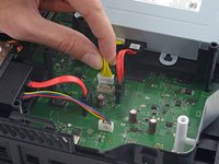 Disconnect the optical drive power and SATA data cables from the motherboard.