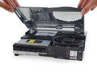 Out comes the system's single 120 mm fan—looking much like a PC case fan, but with some sculpting that's unique to the Xbox One's design.