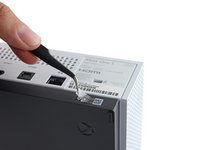 Using our recent console expertise, we bust out the trusty opening tools and pop off some white paneling, finding some sneaky Torx security screws. Boo.
