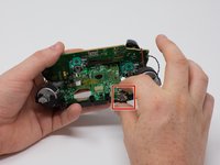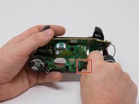 Remove the two 70mm torx-6 screws next to the rumble motors on the bottom motherboard.