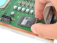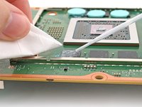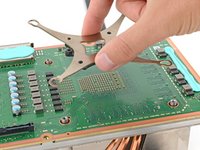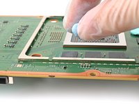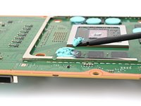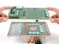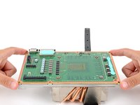 • Depending on the condition of the thermal paste and putty, the board may be bonded to the heatsink assembly. If you can't easily remove the board, use a spudger to gently lift the edges of the board to separate it.