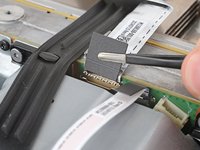 • During reassembly, use thin double‑sided adhesive to secure the cable. If there's adhesive left and it's still sticky, you can reuse it. If you have a new cable, check it for pre‑installed adhesive and remove any liners.