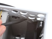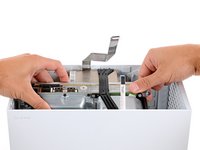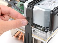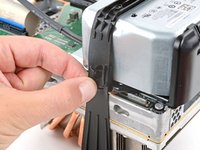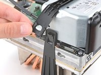 • During reassembly, route the fan cable underneath its small cable guide on the fan housing so it doesn't interfere with the back panel.