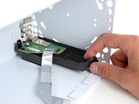 Use your fingers to slide the USB board enclosure out from under the metal clip securing it to the shell.