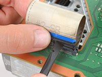Slide an opening pick under the USB port cable to separate the adhesive securing it.