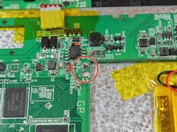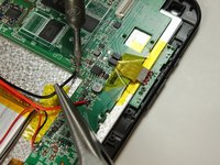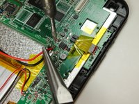 De-solder the two wires that connect the battery pack to the motherboard using a needle-nose plier and a soldering iron.