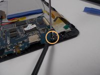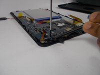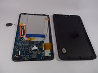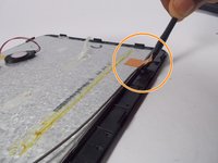 • Slide the spludger between the screen's rolled edge and the back of the tablet and pry apart carefully. Expect the tablet screen to make a cracking sound.
