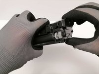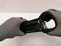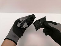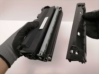 On the right side, hold the toner cartridge firmly with one hand, and use your fingers to remove the plastic casing which covers the gearbox.