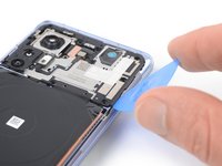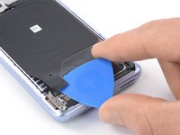 Insert a pick under the bottom left corner of the charging coil and separate its adhesive.