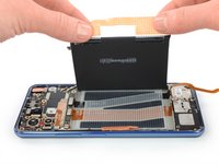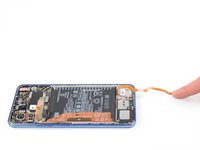 Fold the SIM card tray flex cable towards the charging port in order to get free access to the battery.