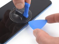 Once the screen is warm to the touch, apply a suction cup to the right edge of the phone.