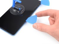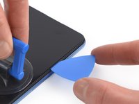 Slide the opening pick to the bottom right corner of the screen to cut the adhesive.