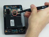 • Use the plastic opening tool to gently pry the battery out of its casing for removal.