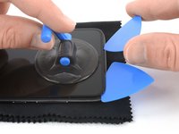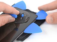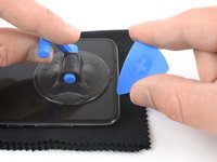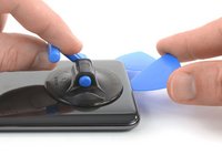 Use the suction handle to pull up the screen and insert just the tip of an opening pick under the right edge of the speaker recess.