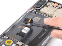Use a pair of tweezers to peel the display flex cable off the midframe. It is attached with mild adhesive.