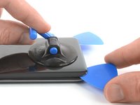 Insert a second opening pick and slide it to the bottom left corner to cut the adhesive.
