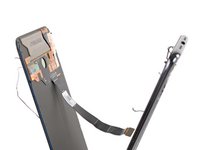 The best way to secure the new screen is with a sheet of custom-cut double-sided tape. Apply the tape to the back of the screen, then carefully feed the display cable through the frame. Align the screen and press it into place.