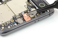 Use the flat end of a spudger to pry up and disconnect the flex cable of the front camera.