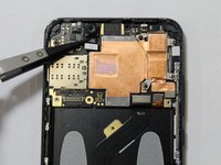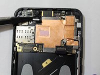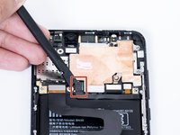 Using a plastic spudger, gently separate the front camera ribbon cable from the motherboard.