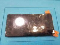 Remove the battery carefully as shown and apply heat to loosen the adhesive holding the screen.