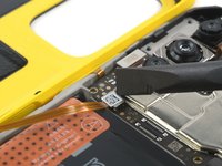 Use the flat end of a spudger to pry up and disconnect the fingerprint sensor cable at the bottom left corner of the motherboard.