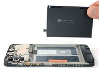 Secure the new battery with pre-cut adhesive or double-sided adhesive tape. In order to position it correctly, apply the new adhesive into the device at the places where the old adhesive was located, not directly onto the battery. Press the new battery firmly into place.