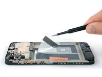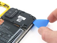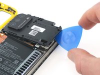 Insert an opening pick into the gap between the phone assembly and the back cover.