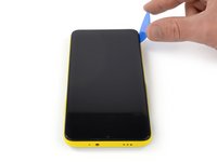 Slide the opening pick along the left edge of the Poco M3 to release the plastic clips.