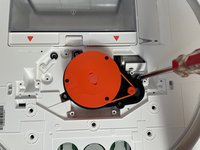 Use a spudger to detach the plastic cord from the motor that connects it to the laser.
