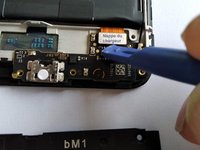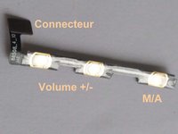Carefully use a flat spudger or a sharp blade between the frame of the screen and the cable which supports the power and volume buttons, located on the left of the telephone to slice the adhesive and remove this cable