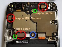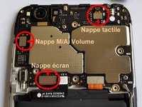 To unclip the rear case, you must insert a fingernail or an opening pick between the screen glass and the case at the level of the card holders located on the left, to create a gap in which you will slide a pick.