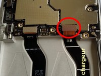 Carefully remove the glue on the back of the flex cable with a fingernail or a plastic spudger