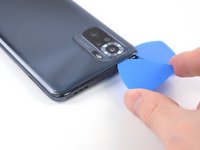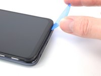 Insert an opening pick between the midframe and display assembly on the left edge of the phone where the SIM tray slot is located.