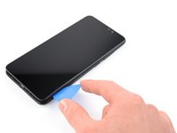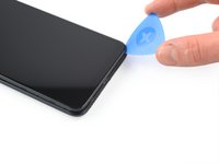 Insert an opening pick between the screen and the back cover on the left edge of the phone where the SIM card tray was located.