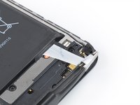Secure the new battery with pre-cut adhesive or double-sided adhesive tape. In order to position it correctly, apply the new adhesive into the device at the places where the old adhesive was located, not directly onto the battery. Press the new battery firmly into place.