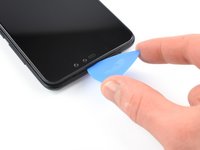 Slide the opening pick along the right edge of your phone to the top right corner to release the plastic clips.