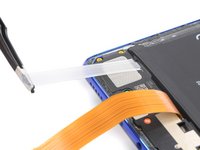 Grab the first pull-tab with a pair of tweezers or your fingers and slowly pull it away from the battery and towards the bottom edge of your phone.