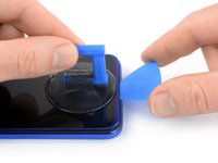 Once the screen is warm to touch, apply a suction cup to the bottom edge of the phone.
