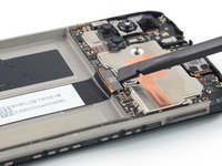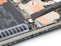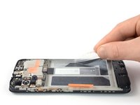 Use your fingers to peel the battery adhesive tape off the midframe and the display flex cable.
