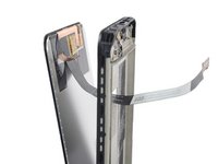 Carefully thread the digitizer flex cable through the gap in the midframe by opening the phone assembly like a book.