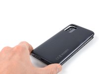 Carefully fold the back cover to the left side of the phone assembly like you would open the cover of a book.