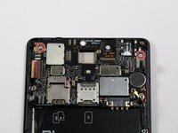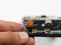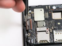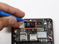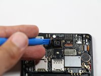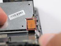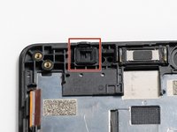 Disconnect the rear-facing camera from the motherboard by pulling out the press-fit connector to its left.