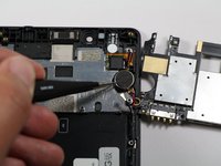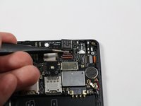Use tweezers to peel the vibrating motor off the frame of the phone.