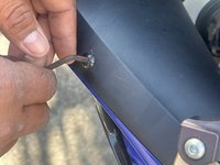 Use a 10 mm Allen key to remove the front seat and expose the battery.